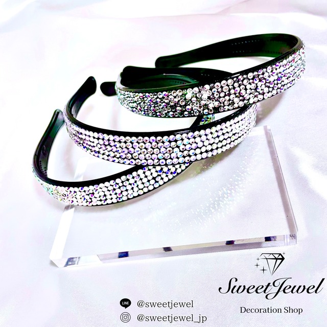 Y様:カチューシャ《ブラック》 ※オーダー品、送料込 ⚫︎カチューシャ《ブラック》 ⚫︎オーダー・オリジナルデザイン ⚫︎全面スワロフスキー使用 大中小ランダム配置(クリスタル×クリスタルAB×クリスタルシルバーナイト) 縁までしっかりデコレーションしてるので、アップスタイルの時でもキラキラが見えて可愛いです♪ カチューシャ内側はシリコン素材で滑りにくくなっています。 \\オーダー受付中// こんな物、こんなデザインできる?等、お気軽にお問い合わせお待ちしております♪ 公式LINE▶︎▶︎https://lin.ee/LR4nxGD